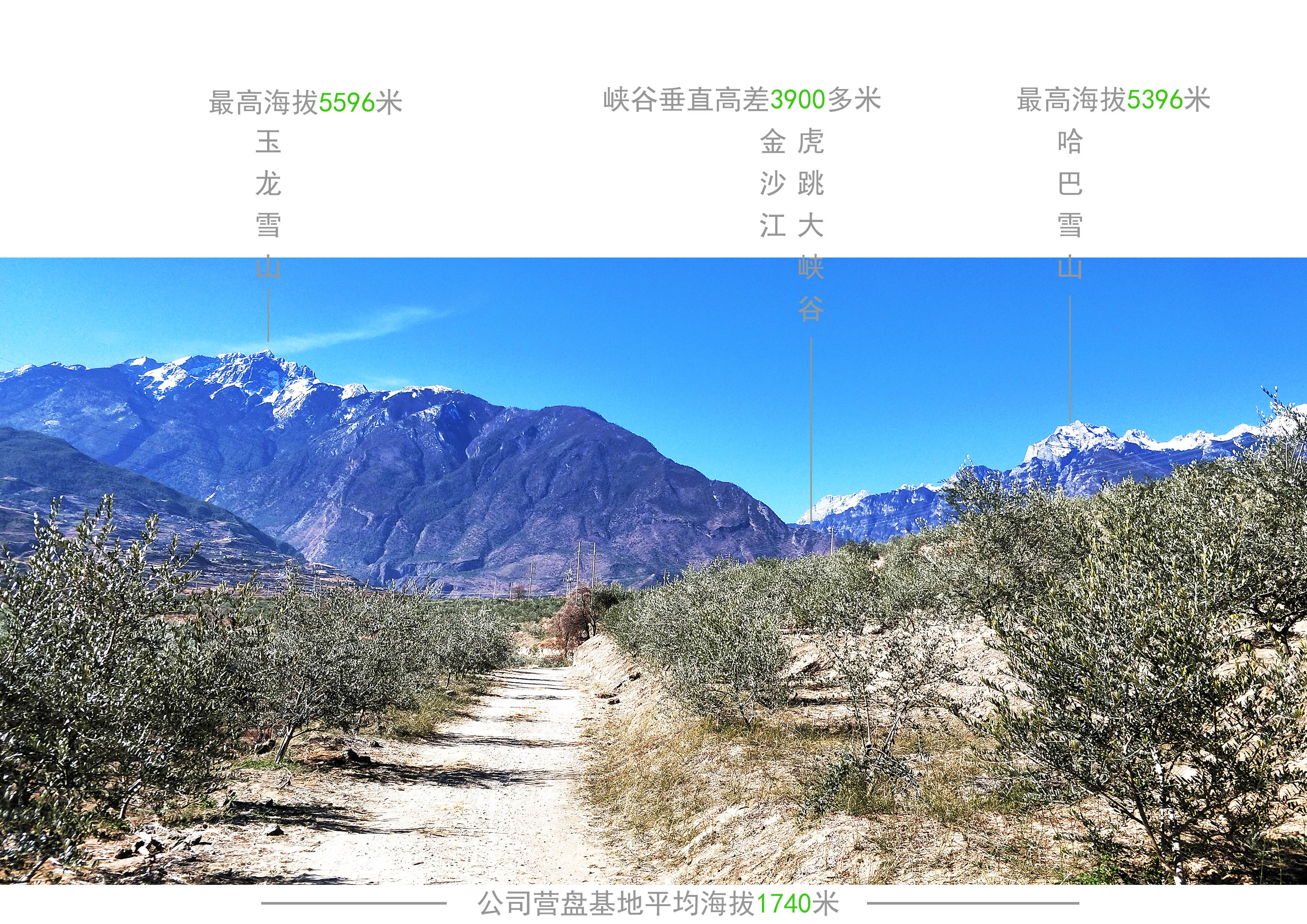 公司基地位于麗江市玉龍納西族自治縣大具鄉(xiāng)境內(nèi),大具鄉(xiāng)位于玉龍縣東北角,玉龍雪山十三峰最后一峰腳下,山川拱衛(wèi),金沙江穿壩而過,江對岸是香格里拉縣的三壩鄉(xiāng),大具鄉(xiāng)風(fēng)光秀麗,遠(yuǎn)離污染。大具鄉(xiāng)的地理坐標(biāo)為北緯27o10′~27o26′,東經(jīng)100°。氣候條件為亞熱帶海洋性季風(fēng)氣候,屬于金沙江干熱河谷區(qū),年平均氣溫17℃,最高溫33.7℃,最低溫0℃。年降雨量在600毫米-900毫米,霜期30天左右。大具鄉(xiāng)氣候炎熱,光照條件好,積溫高,晝夜溫差大,造就了發(fā)展油橄欖產(chǎn)業(yè)得天獨(dú)厚的地理環(huán)境優(yōu)勢。大具冬季的較低低氣溫在0℃左右,很好的滿足了花芽分化對低溫的要求,同時(shí)不至于凍壞橄欖樹。因此,大具鄉(xiāng)具有種植油橄欖得天獨(dú)厚的自然優(yōu)勢。